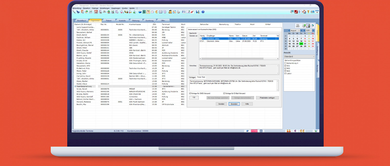 Mit ivoris® SMS versenden Sie Erinnerungen, Recalls und persönliche Nachrichten ganz einfach direkt aus ivoris®. So bleibt Ihre Kommunikation zuverlässig, schnell und nah – und Ihre Terminplanung wird noch sicherer.