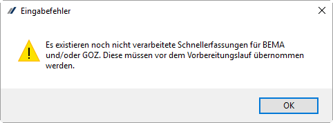 Wechseln Sie bei dieser Hinweismeldung in die Abrechnung Kieferorthopädie/BEMA-Tabelle und klicken den grünen Pfeil
